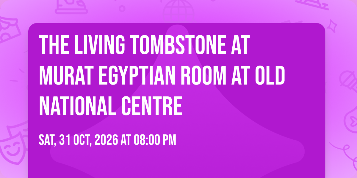๐ Welcome to The Living Tombstone at Murat Egyptian Room at Old National Centre, where the impossible becomes possible and dreams take flight! ๐๏ธ Join us at Murat Egyptian Room at Old National Centre in the heart of Indianapolis, IN for an event that will redefine your expectations. ๐ On October 31st, 2026 at 08:00 PM, witness the transformation of space and time into something truly magical. โจ It's a curated experience combining the best of innovation, entertainment, and community spirit, creating moments that will be remembered for years to come. Whether you're a first-time visitor or a seasoned enthusiast, prepare to be amazed. ๐ Book now to ensure your place in this unforgettable experience!