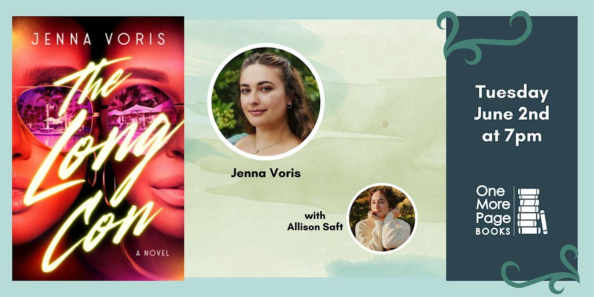 Join us as we welcome Jenna Voris (Say a Little Prayer, Every Time You Hear That Song) to celebrate her adult debut: THE LONG CON! Speaking in conversation with Voris will be author Allison Saft (A Fragile Enchantment). Signings to take place after the discussion.
