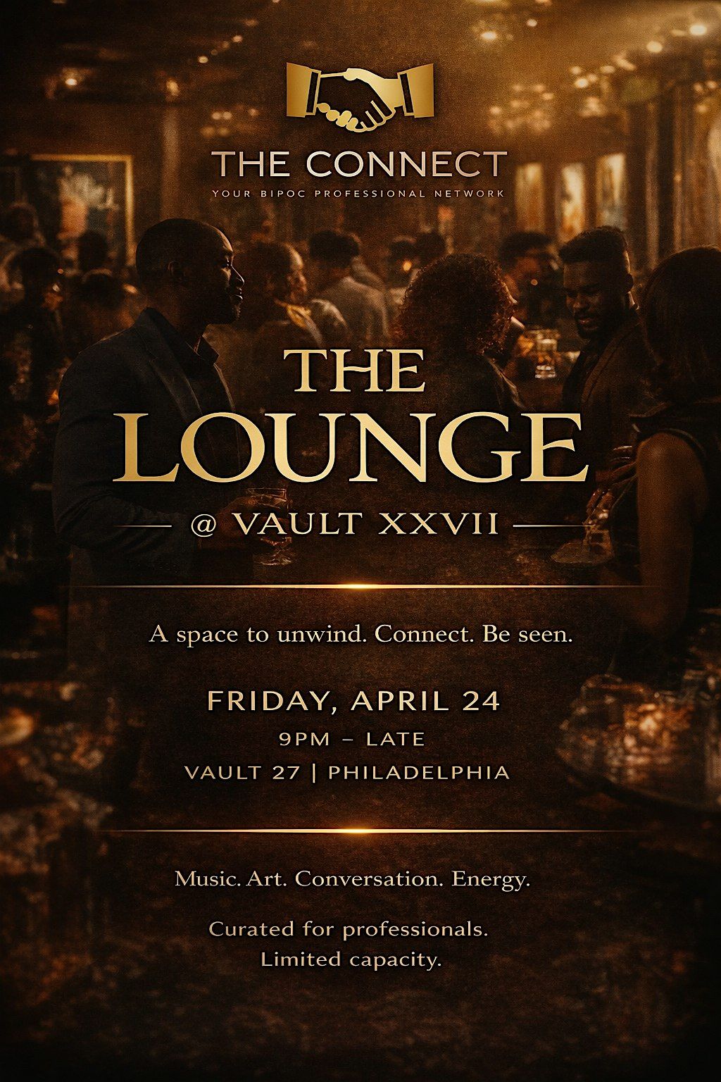 Are you tired of ending up at the W every weekend because there never seems to be a space for Black professionals to truly unwind, feel at ease, and enjoy the night in the right atmosphere?For one night only, we’re creating a different kind of Friday night at Vault XXVII.Welcome to The Lounge — an elevated experience where art, music, conversation, and ambiance come together in a way that feels refined, intentional, and memorable. Think warm lighting, beautiful energy, thoughtful details, and a crowd of accomplished professionals, creatives, founders, and tastemakers who know how to appreciate a well-curated room.This is not the usual nightlife routine. It is a space designed for those who want more from the night — more style, more substance, and more meaningful connection.Dress as you want to be remembered.