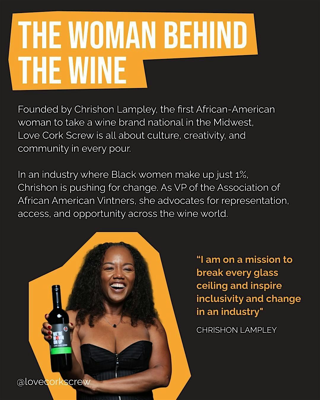 Join us for an elevated evening of wine, culture, and connection as The Black Sip presents a curated experience featuring Love Cork Screw—with founder and CEO Chrishon Lampley in attendance.
