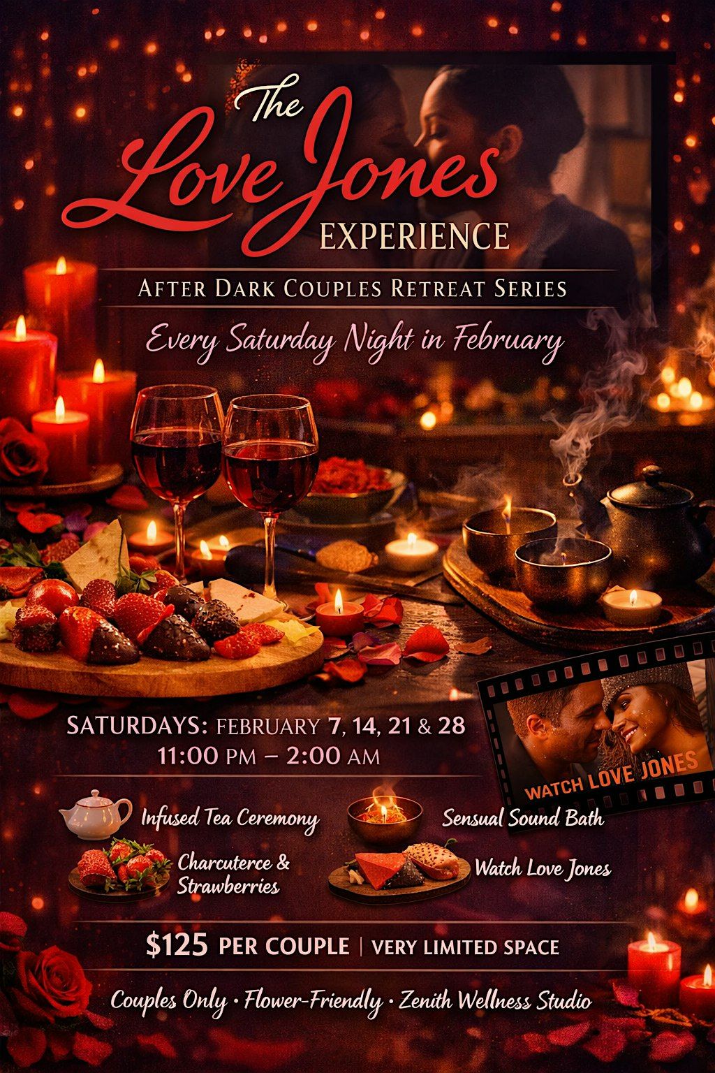 💘✨ The Love Jones Experience: After Dark Couples Retreat Series ✨💘 Every Saturday Night in February at Zenith Wellness Studio This February, love becomes a ritual. The Love Jones Experience: After Dark is a recurring, couples-only mini retreat inspired by the timeless film Love Jones—designed to deepen emotional intimacy, sensual connection, and shared presence through sound, ceremony, and story. Each Saturday night, couples are welcomed into a candlelit, flower-friendly sanctuary for a special tea ceremony, intentionally crafted to soften the body and open the heart. From there, you’ll be guided through a sensual-touch sound bath, inviting relaxation, trust, and deeper attunement with your partner. The evening continues with a curated charcuterie experience and strawberries, followed by an immersive screening of Love Jones in our cozy, color-lit Zen oasis—complete with aromatherapy, romantic soundscapes, and intentional ambiance. This is not just movie night. It’s a love ritual. A pause. A return to each other. 🌹 February Dates 📅 Saturdays: February 7, 14, 21 & 28 ⏰ 11:00 PM – 2:00 AM 💞 Details 🎟️ $125 per couple ✨ Couples only Flower-friendly & 🫖 magic tea ceremony 🎶 Sensual-touch sound bath 🧀 Shareable charcuterie + strawberries 🎥 Watch Love Jones together ⚡ Only 9 couples per night — extremely limited Slow down. Soften. Reignite. February belongs to love—Love Jones style. 💖