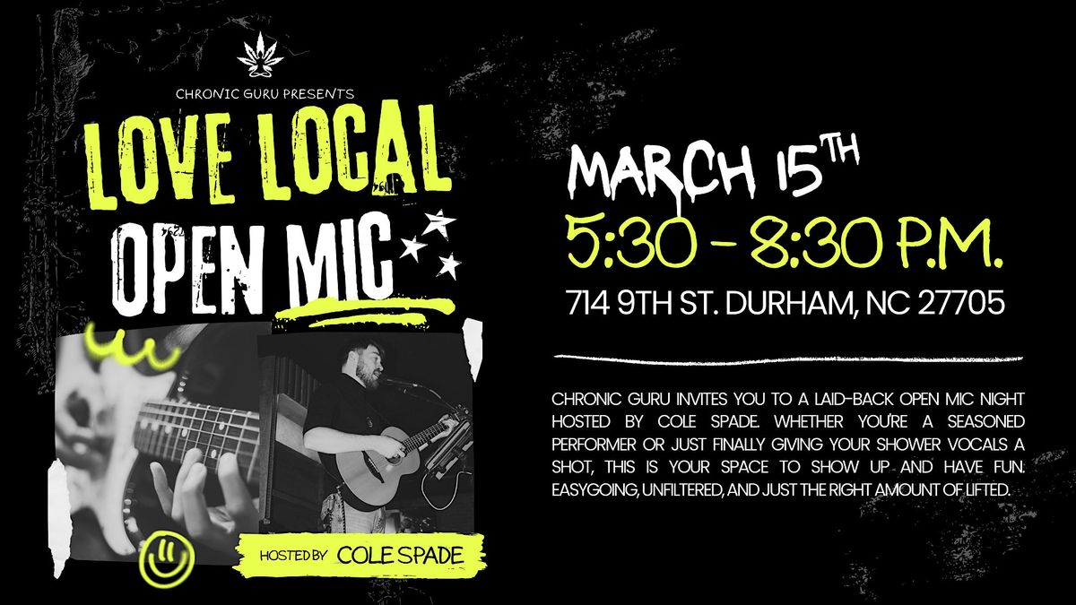 Chronic Guru invites you to a laid-back open mic night hosted once a month by Cole Spade, created specifically for authentic expression and community.