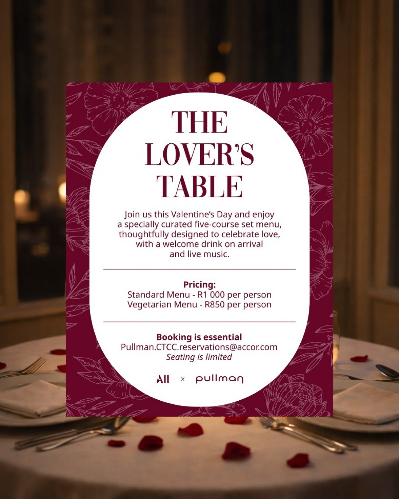 Join us at Pullman Cape Town for an elegant evening of connection, flavour, and celebration. Enjoy a 5-course set menu, a welcome drink on arrival, and an atmosphere designed for a night that feels special from the first moment to the last.
