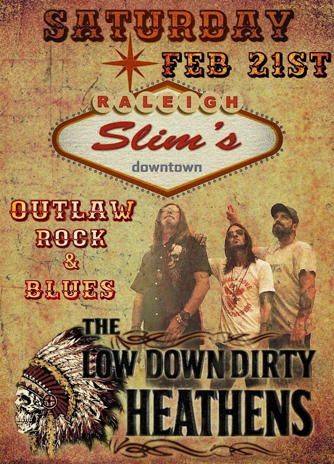 The Low Down Dirty Heathens are playing at Slim’s on February 21st at 9pm! This NC trio is known for their outlaw rock and blues jams.About this Event