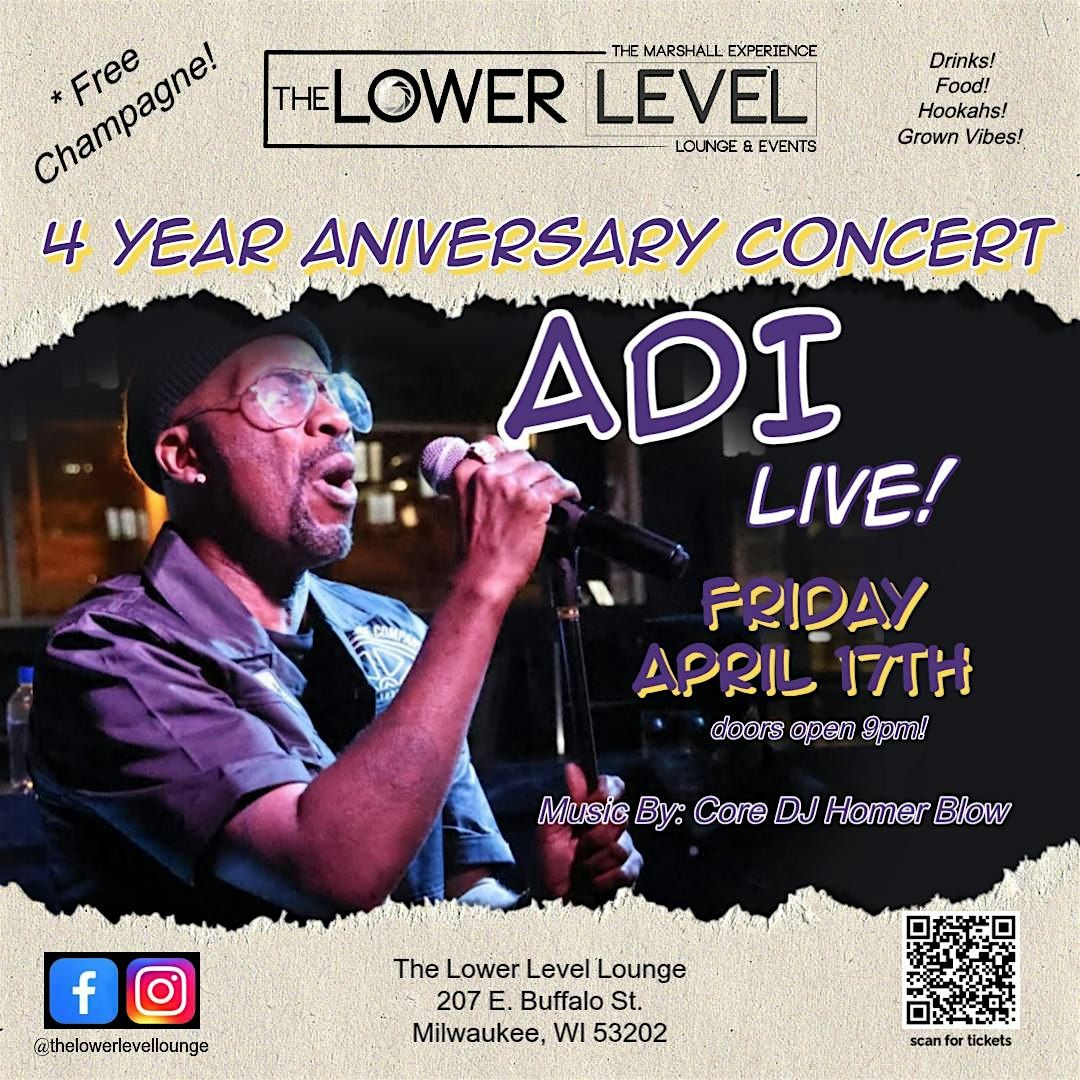 Celebrate 4 years of vibes at The Lower Level Lounge with Adi Armour rocking the stage live!About this Event