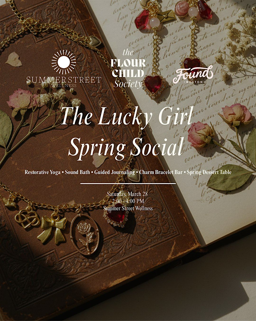 The Lucky Girl Spring Equinox Social is a mini-retreat style gathering to welcome the new season with reflection, creativity, and good energy. Hosted by The Flour Child Society, a Boston-based women’s social club, and in partnership with Summer Street Wellness and FOUND Boston, the afternoon brings women together for a relaxed experience blending gentle wellness practices and a fun social atmosphere.