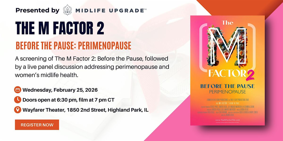 Hosted by Midlife Upgrade, this special event features a screening of The M Factor 2: Before the Pause, followed by a live panel discussion with leading physicians and advocates. Together, we’ll explore perimenopause, an often-misunderstood stage of midlife that can begin years before menopause and impact women physically, emotionally, and mentally.