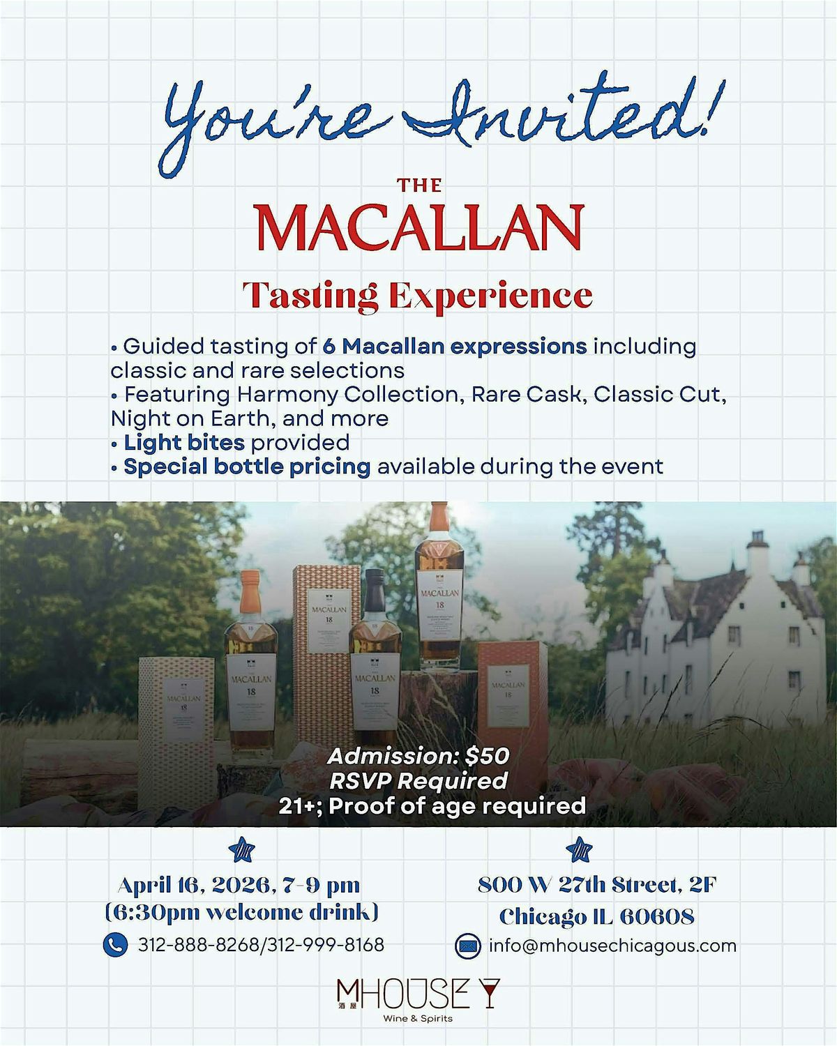 Join us for an exclusive Macallan Tasting Experience at M House! Discover the world of Macallan whiskies through a guided tasting of 6 premium expressions, including classic and rare selections.
