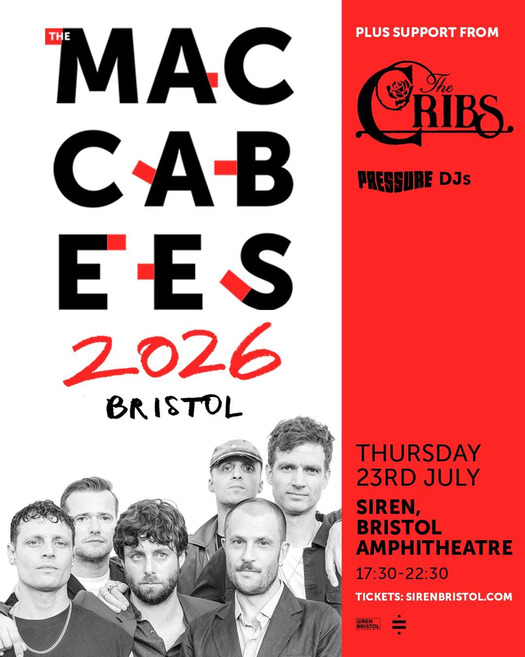 For the first time in 14 years, The Maccabees return to Bristol performing at the iconic Bristol Harbourside Amphitheatre. Tickets running out fast.Pressure is ECSTATIC to be joining The Maccabees as part of Siren Bristol on Thursday July 23rd. We had an absolute blast spinning tunes for you in area two last year with Bloc Party and can't wait to return to the Amphitheatre with Siren.