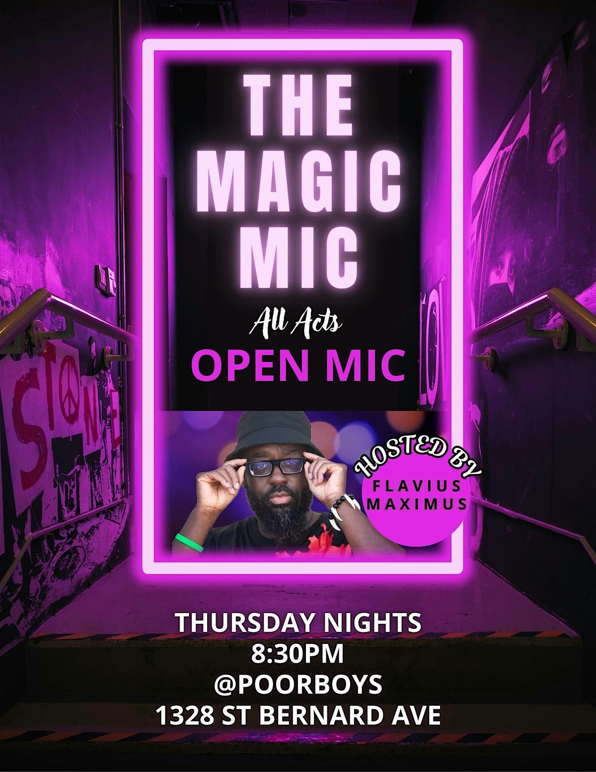 Come share in the Magic with New Orleans finest. Brand new or professional from comedy to poetry to music. Everyone gets 7 minutes. Free !
