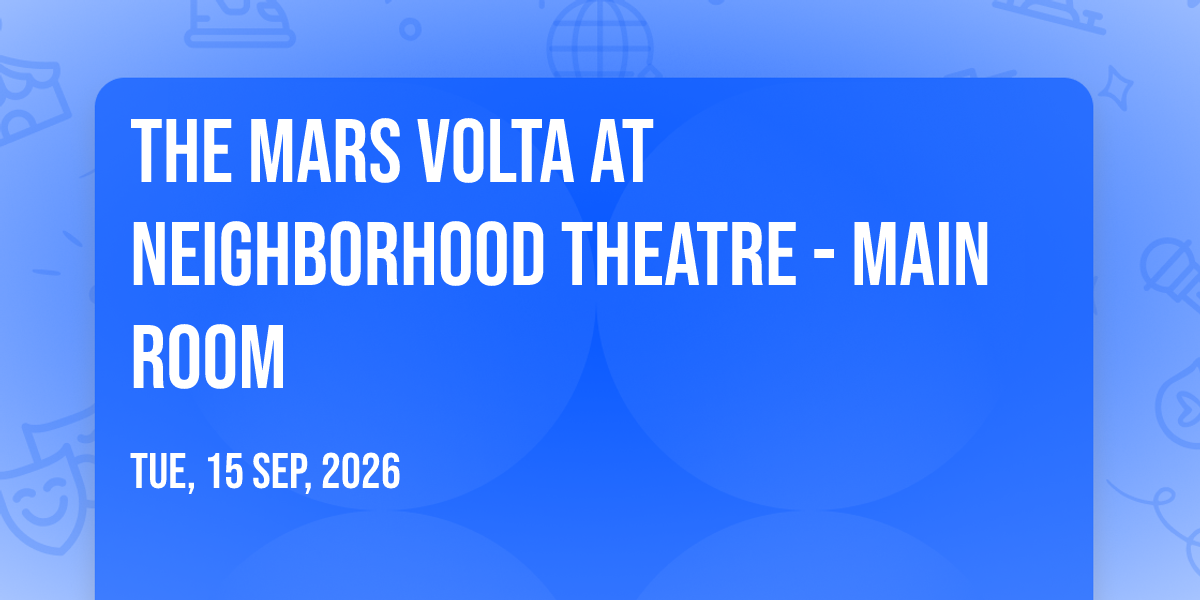 🌟 Be part of history at The Mars Volta at Neighborhood Theatre - Main Room, an extraordinary gathering that will captivate your imagination! 🏛️ The prestigious Neighborhood Theatre - Main Room in Charlotte, NC sets the stage for an unforgettable experience on September 15th, 2026 at 08:00 PM. ✨ They are bringing together the finest elements of entertainment and innovation to create moments that will take your breath away. From the moment you arrive, you'll be immersed in an atmosphere of wonder and excitement. 🎯 This carefully planned event ensures every guest experiences something truly special. 🎊 Early booking is recommended for this must-attend event of the season!