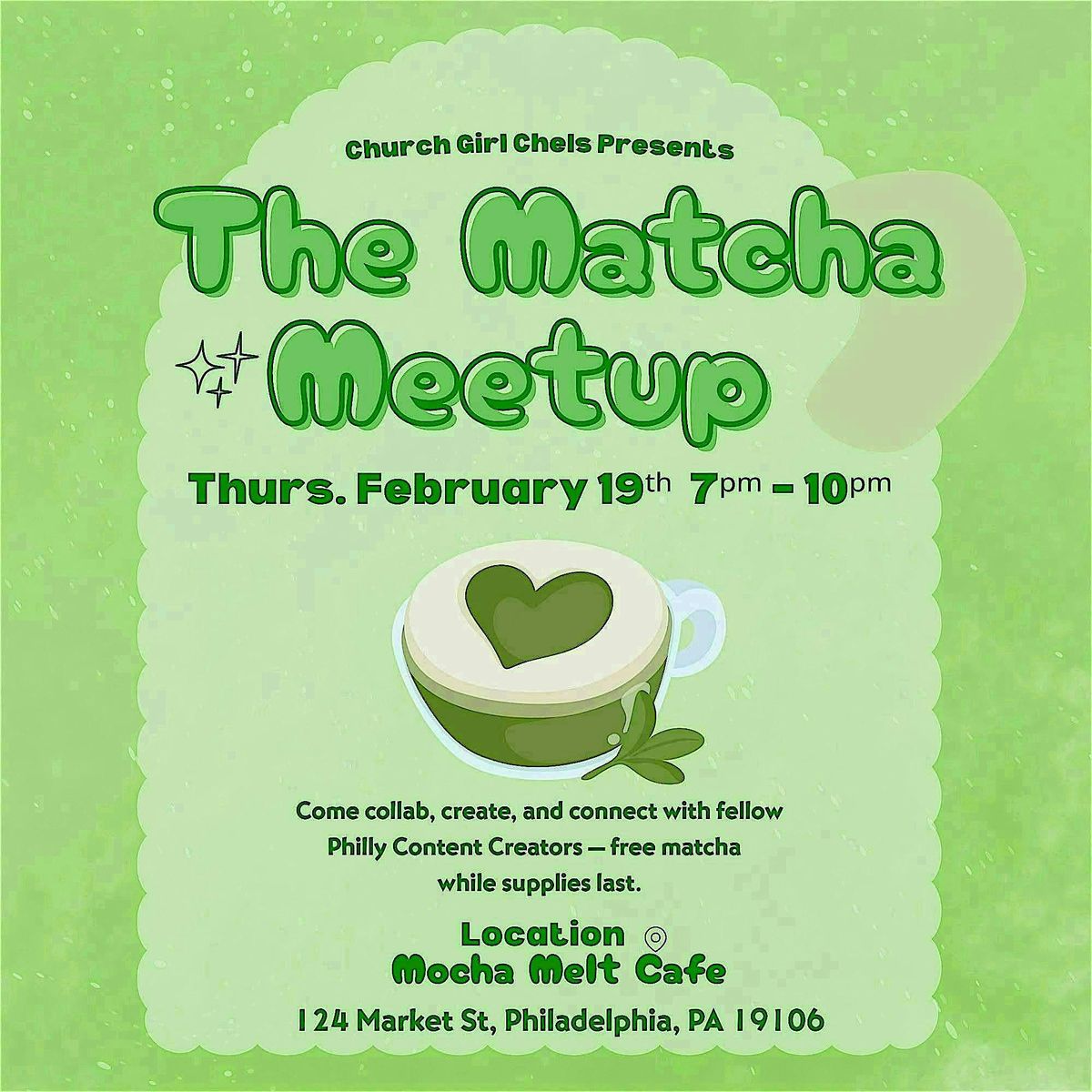 Come collab, create, and connect with fellow Philly content creators at this after-work matcha meet-up — good vibes, cute photo ops, and real chill networking. Pull up, meet other creatives in the city, shoot some content, and just vibe out together. Free sweet treats and matcha while supplies last. 🍵✨