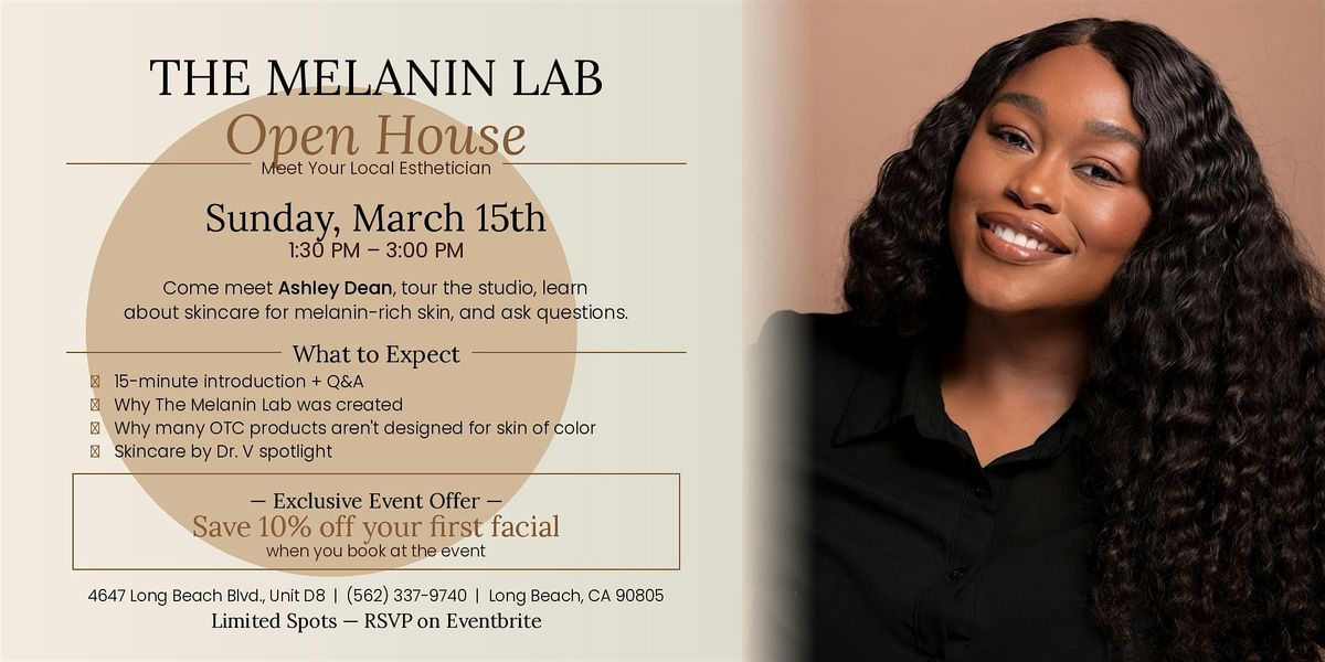 Come meet Ashley Dean, Licensed Esthetician and founder of The Melanin Lab, as she opens her doors for a free, no-pressure event designed to educate and empower you on your skincare journey.
