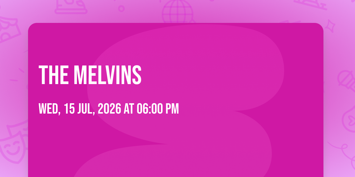 🎉 Welcome to The Melvins, where the impossible becomes possible and dreams take flight! 🏛️ Join us at The Record Bar in the heart of Kansas City, MO for an event that will redefine your expectations. 📅 On July 15th, 2026 at 06:00 PM, witness the transformation of space and time into something truly magical. ✨ It's a curated experience combining the best of innovation, entertainment, and community spirit, creating moments that will be remembered for years to come. Whether you're a first-time visitor or a seasoned enthusiast, prepare to be amazed. 🎊 Book now to ensure your place in this unforgettable experience!http://maps.seatics.com/GeneralAdmissionEvent_2018-06-26_0902_SVGC_tn.gif