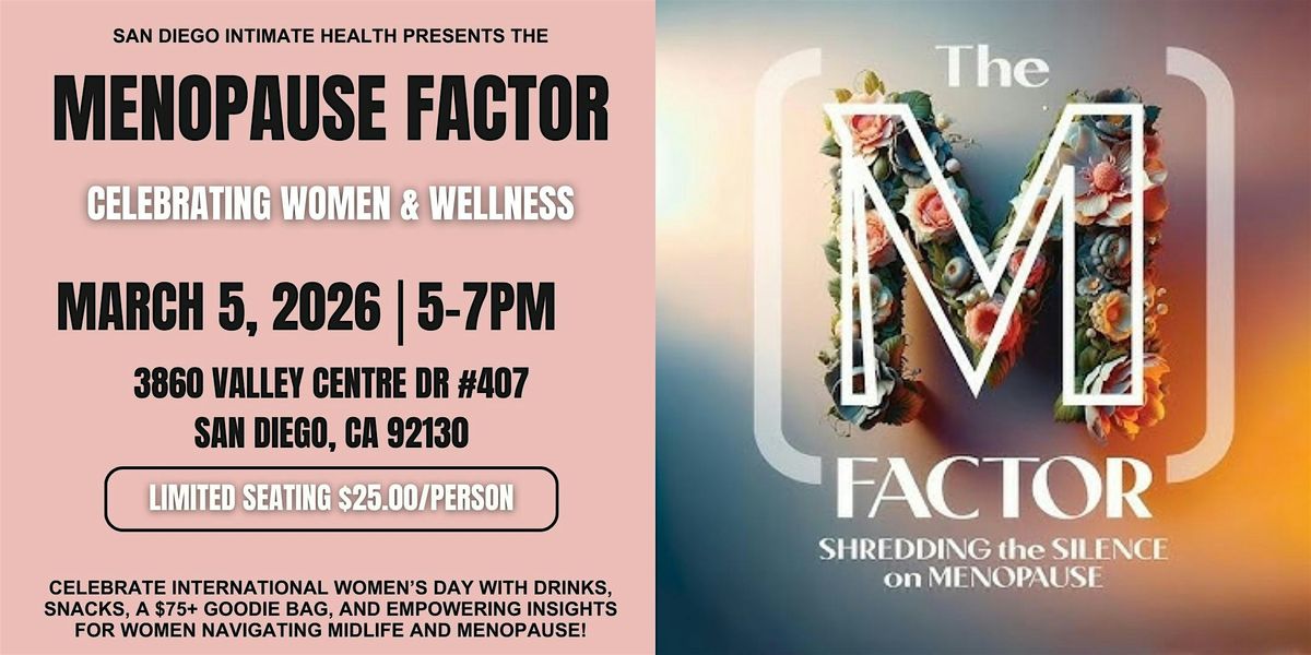 Celebrate International Women’s Day with San Diego Intimate Health at an exclusive in-person event featuring the documentary “The M Factor” and a live discussion with Dr. Kat Khorrami. This event is designed for women of all midlife stages—pre-menopause, peri-menopause, and post-menopause—who want honest insights, support, and empowerment as they navigate this phase of life.