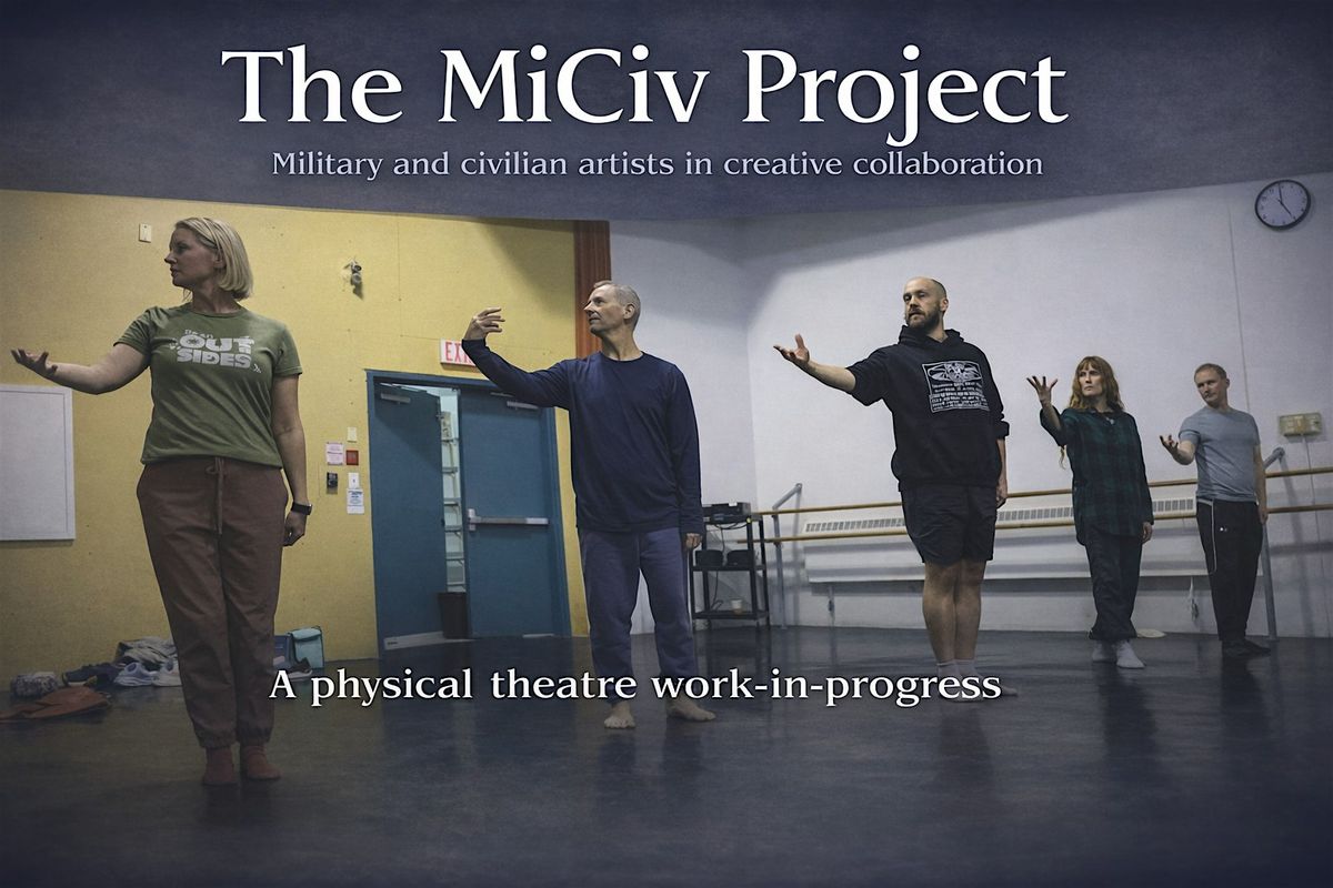The MiCiv Project is a collaborative physical theatre presentation featuring military veterans and civilian performing artists. Directed by Michael Du Maresq, this work-in-progress explores personal lived experiences through movement-based performance, offering audiences an opportunity to witness authentic artistic storytelling. The project brings military and civilian communities together to create a powerful, shared artistic expression.