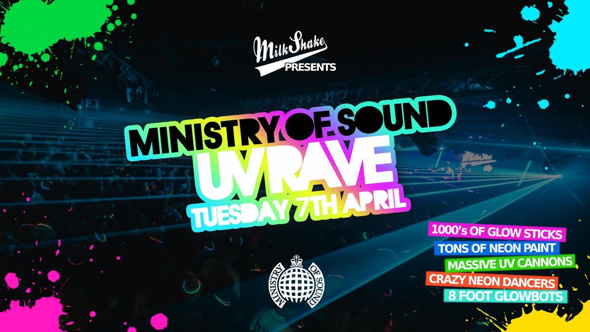 Milkshake, Ministry of Sound Presents:The Annual UV Rave 🔋 2026Tuesday April 7th 2026Ministry of Sound Club 10:30pm-4amLondon’s Biggest MidWeek Rave ⚡You know how it goes by now... After countless sold out parties in 2025, Milkshake Ministry of Sound will bring you London’s biggest UV Rave as we roll into February, so we