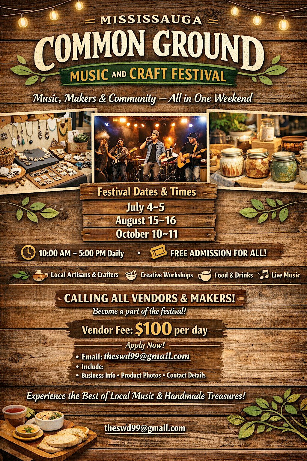 Are you an artisan, musician, food vendor, or small business owner looking to showcase your work and connect with the community? The Mississauga Common Ground Music and Craft Festival is the perfect opportunity to grow your brand, meet new customers, and be part of a supportive and creative environment.