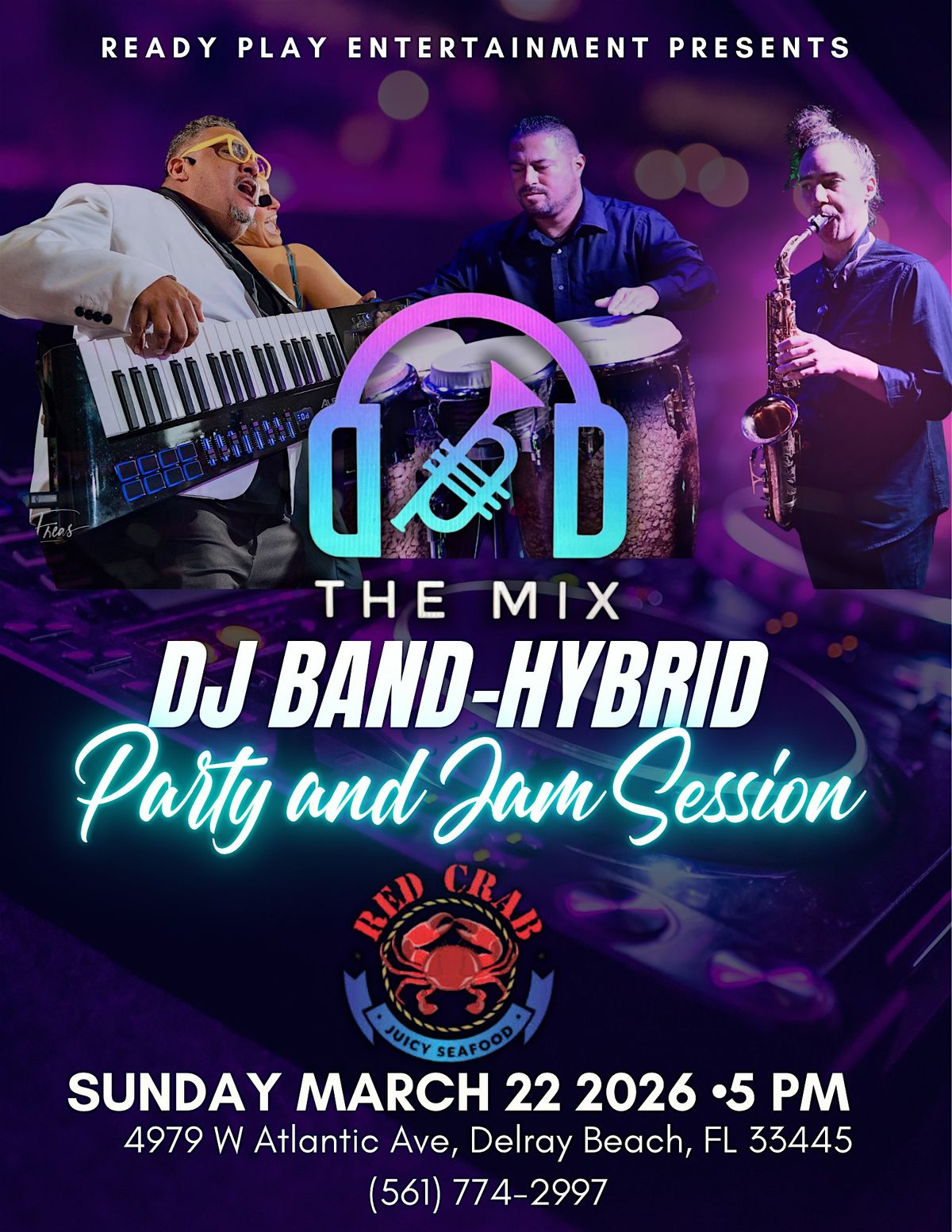Experience a unique Hybrid Live Music Showcase with the Mix at Red Crab, featuring a high-energy blend of live saxophone, drums, keys, trumpet, vocals, and DJ elements — all in one performance.