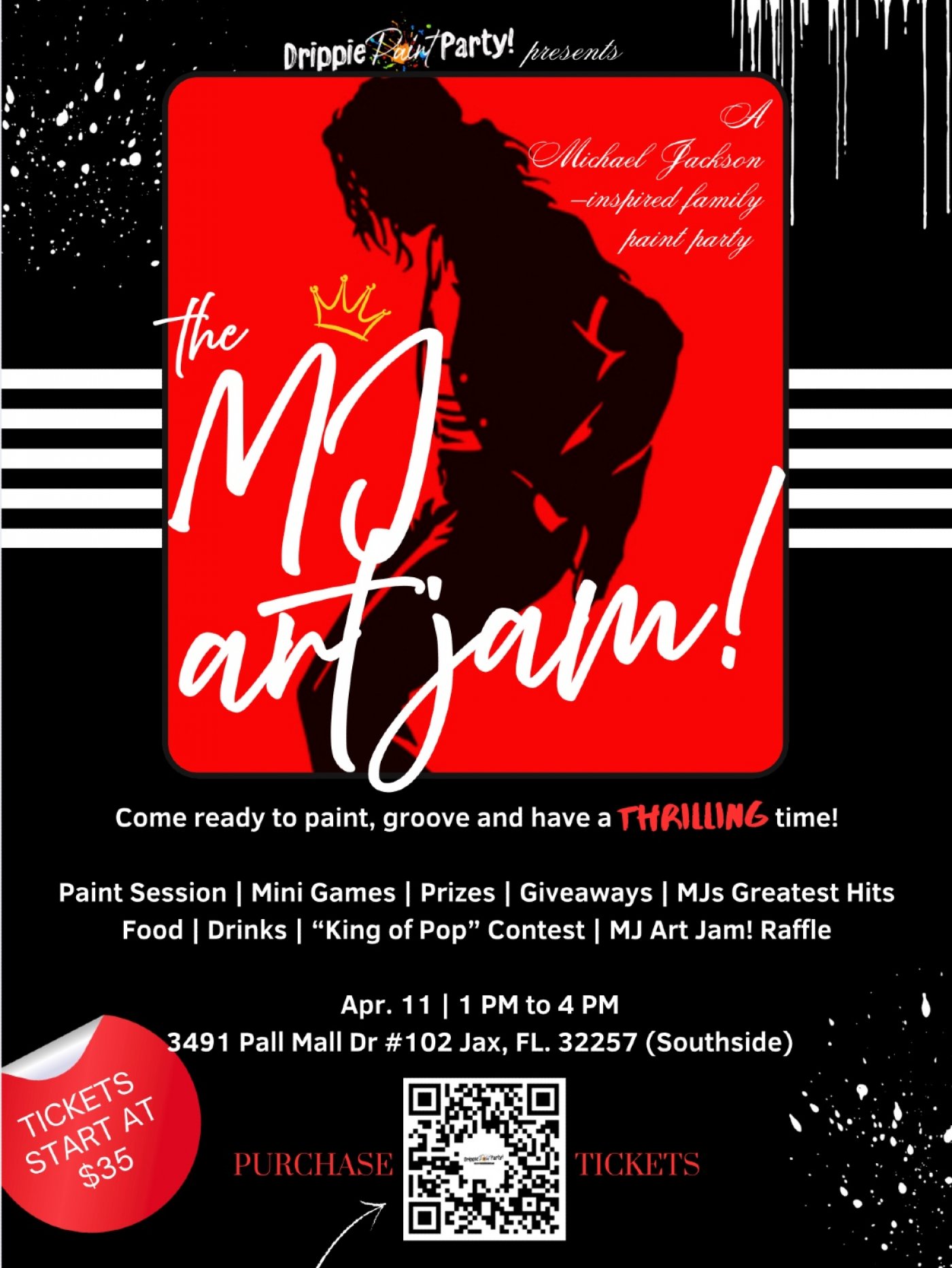 A Michael Jackson–inspired paint party filled with music, creativity and fun! Paint your own masterpiece while vibing to iconic MJ hits. It’s the perfect night to paint, dance and celebrate the King of Pop with friends and family.