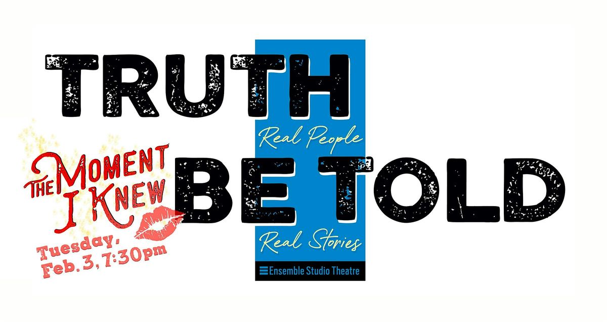 TRUTH BE TOLD is back... with possibly our favorite theme! Featuring 6 storytellers sharing absolutely true stories about “the moment when” they knew—in matters of love and lust--the unexpected became unavoidable. There will also be opportunities for you to share not only your own true stories, but also wine, candy, laughter... and embarrassment.