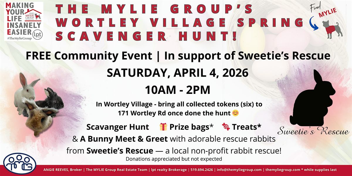 Spring is here, and so are the bunnies! 🐰 Join The MYLIE Group for a fun-filled scavenger hunt and an adorable Bunny Meet & Greet hosted by Sweetie’s Rescue, a local non-profit rabbit rescue. Meet, snap photos, and learn about these lovable furry friends while enjoying a day outdoors.
