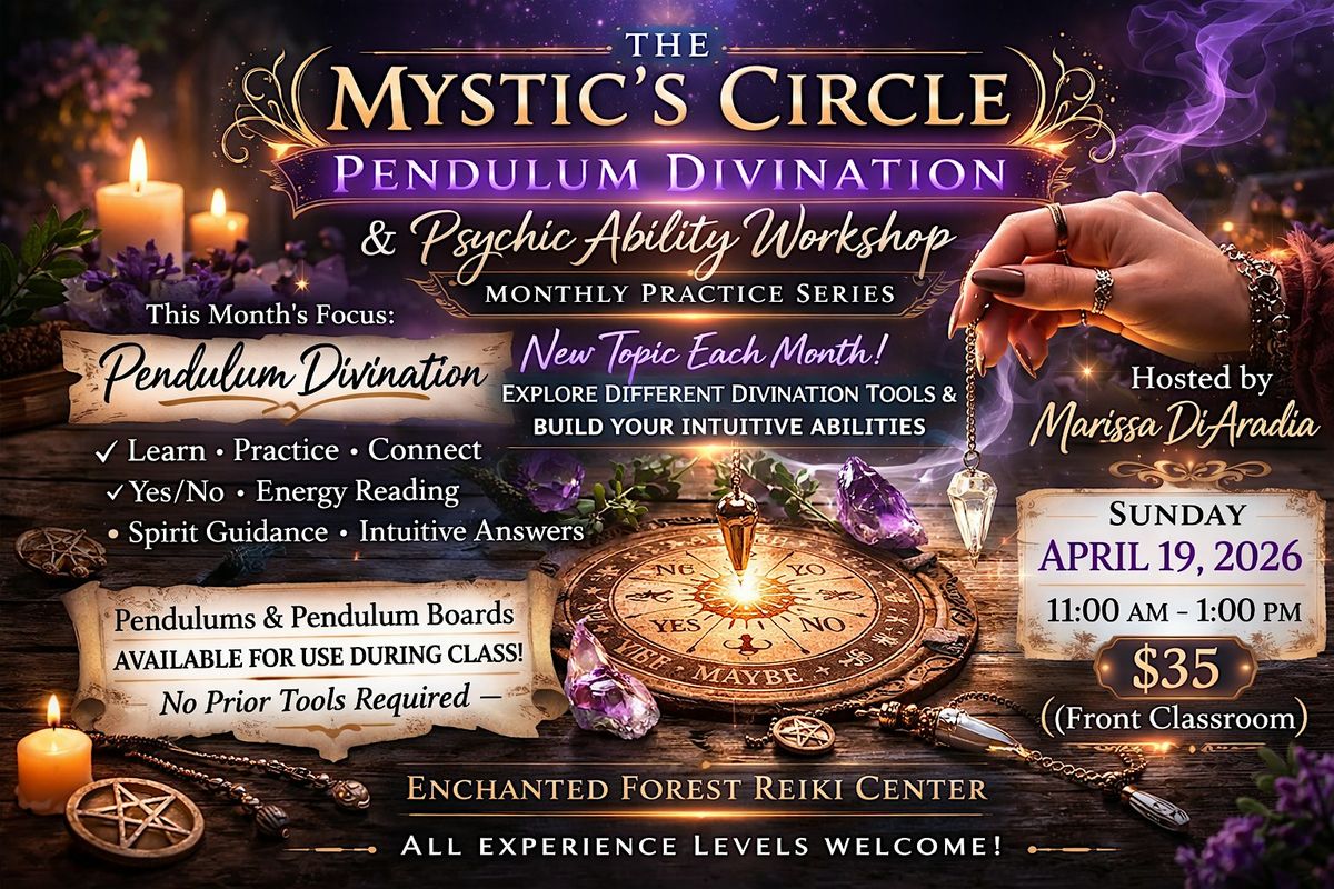 The Mystic’s Circle is designed to help mystics, readers, and seekers strengthen their intuitive connection while learning practical techniques that can be used in everyday spiritual practice.