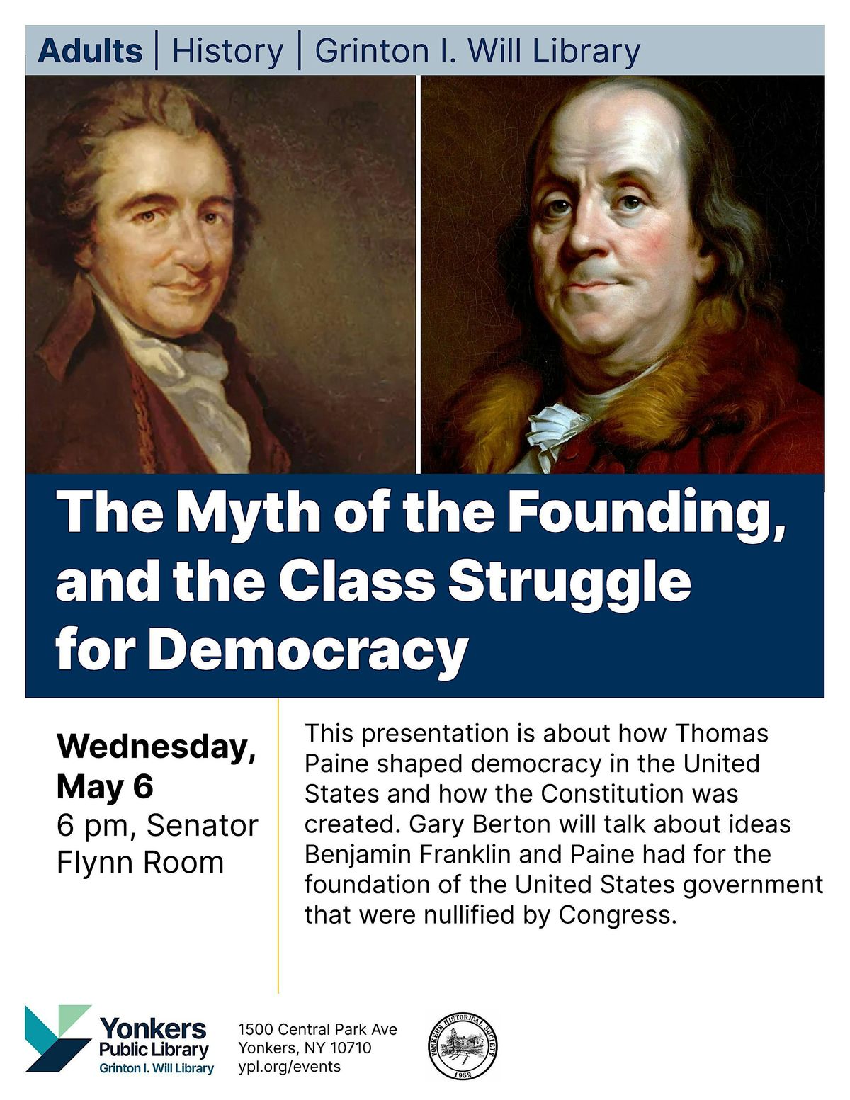 This presentation is about how Thomas Paine shaped democracy in the United States and how the Constitution was created. Gary Berton will talk about ideas Benjamin Franklin and Paine had for the foundation of the United States government that were nullified by congress.
