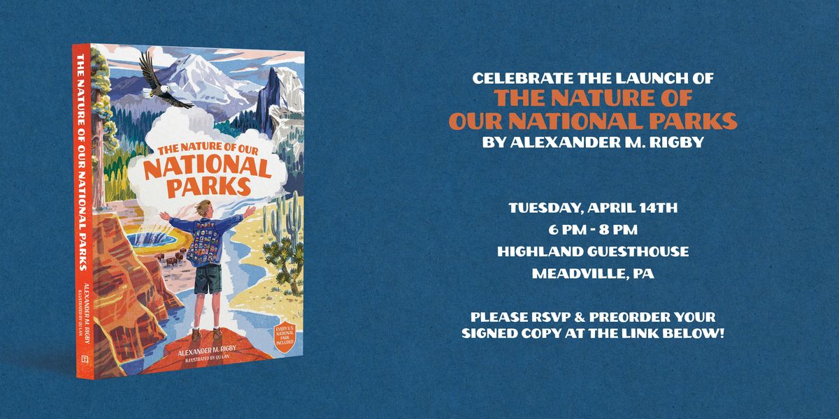 is a 144-page, fully illustrated children's book that features all 63 US National Parks across America, of which Alexander has visited every one! Adults will love the book too as it features fascinating facts about the parks' flora, fauna, and formations, while also providing tons of trip recommendations. Learn about the parks and visit with other nature lovers and pick up your personalized, signed copy of the book at the event. Light snacks and refreshments will also be provided. Purchase of the book is required to attend.