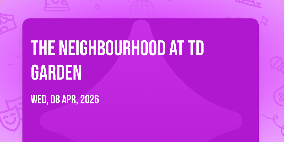 ✨ Discover the extraordinary at The Neighbourhood at TD Garden, where magic meets reality in ways you've never imagined! 🏛️ Set in TD Garden nestled in bustling Boston, MA, this event promises to be a landmark occasion. 📅 Taking place on April 8th, 2026 at 07:30 PM, it's going to create an atmosphere where every moment becomes a cherished memory. 🌟 Immerse yourself in an experience crafted with attention to every detail, designed to surprise and delight at every turn. They have worked tirelessly to ensure this event exceeds all expectations, bringing together elements of entertainment, innovation, and pure joy. 🎊 Don't miss your chance to be part of this remarkable journey!