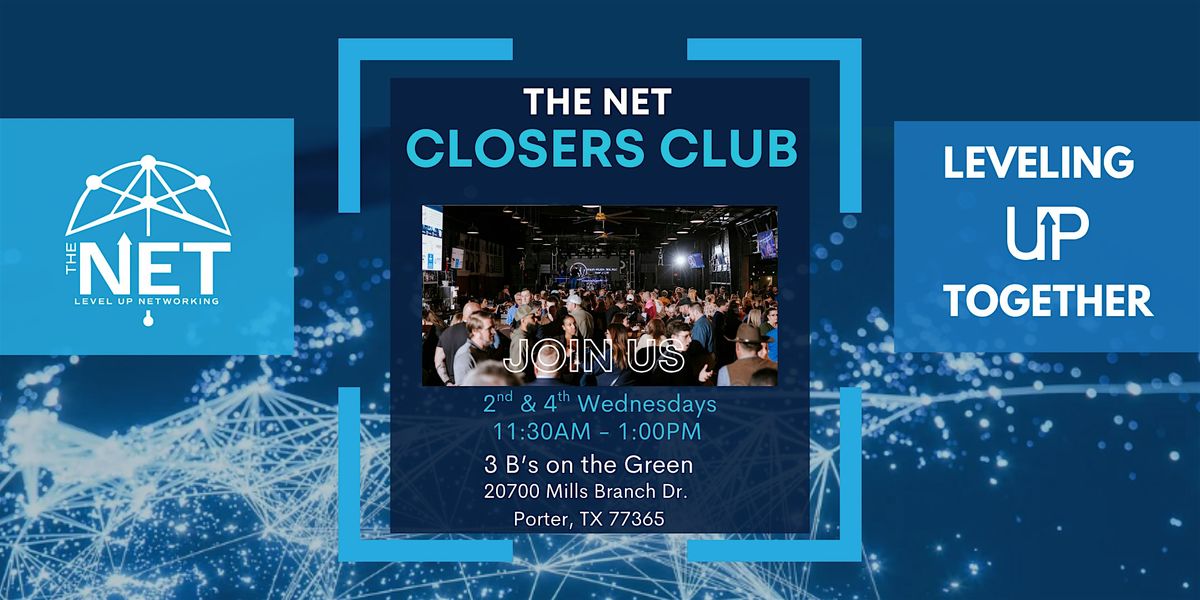 Connect with like-minded professionals from Kingwood and the surrounding areas in an atmosphere built on trust, collaboration, and momentum. Whether you’re looking to strengthen your referral partnerships, sharpen your pitch, or surround yourself with growth-minded leaders, The NET Closers Club is where connections turn into opportunities.