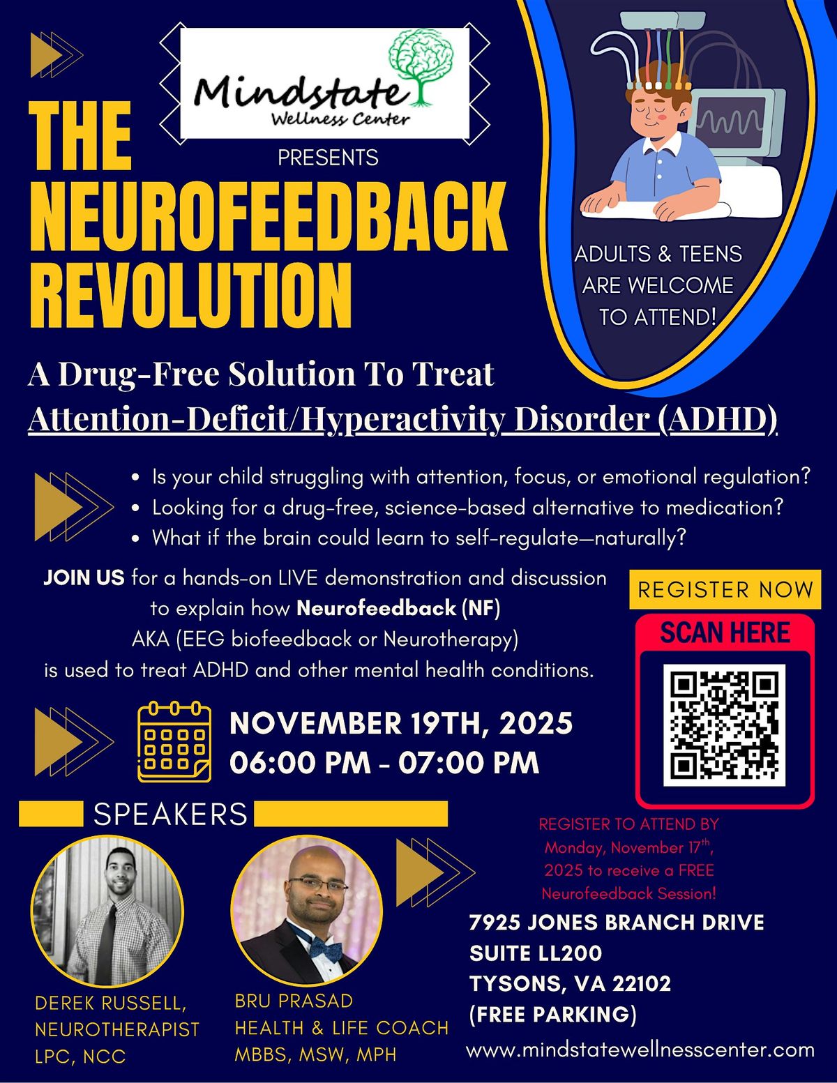 Register by Monday, November 17th, 2025 to receive a FREE Neurofeedback Session after attending the event!