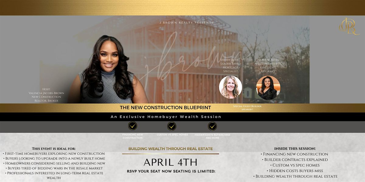 Join us for An Exclusive Homebuyer Wealth Session where you'll get the inside scoop on navigating new construction homes like a pro. This in-person event is perfect for anyone looking to build wealth through smart homebuying strategies.Buying a newly built home can be one of the most powerful ways to build long-term wealth — but many buyers don’t fully understand how the process works.