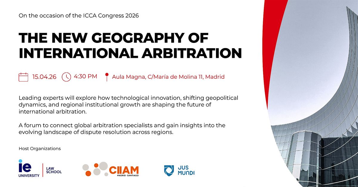 On the occasion of the ICCA Congress 2026, IE Law School, CIIAM – Centro Internacional de Arbitraje de Madrid, and Jus Mundi invite practitioners, academics, and arbitration professionals to a special gathering in Madrid.