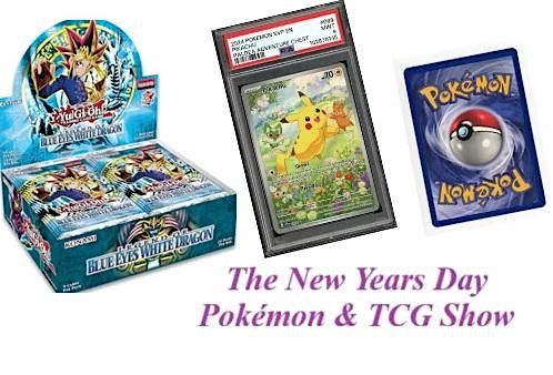 The New Years Day Pokemon & TCG Show, January 1 with special hours of 4 pm to 9 pm, Holiday Inn Dedham, 74 Vendor Tables, Buy-Sell-Trade Pokemon, Yugi-Oh, Magic, One Piece cards & collectibles. $2 admission, under 16 free, free hourly door prizes. Rt. 95 to Rt. 1 to the Holiday Inn