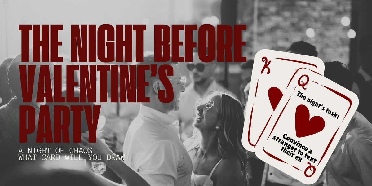 Join us for a Valentine’s-themed CHAOS party made for people who are tired of sappy playlists, overpriced roses, and pretending they care. Expect unhinged energy, reckless dancing, and zero pressure — just good vibes, loud music, and a room full of people in the same “let’s see what happens” mindset.