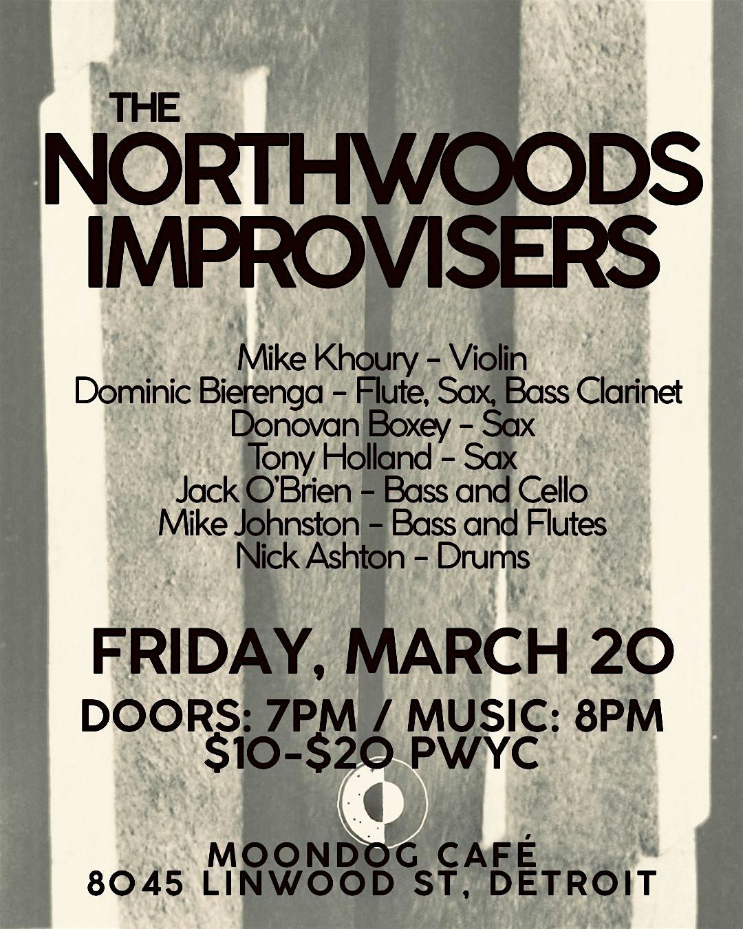 Founded in Traverse City in 1976 by Mike Gilmour and Mike Johnston, The Northwoods Improvisers is a revolving ensemble of highly-seasoned instrumentalists, now in their 50th year. With a number of fresh recordings on Detroit's Entropy Stereo, they're making the rounds in 2026. Current membership includes: