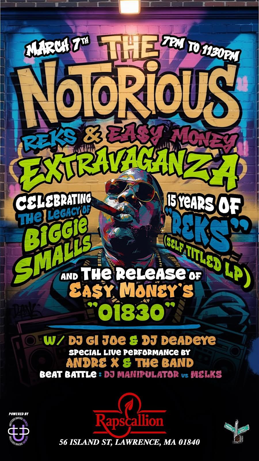 A night celebrating the legacy of Biggie Smalls & 15 years of REKS (self titled LP) plus the release of Easy Money's "01830"