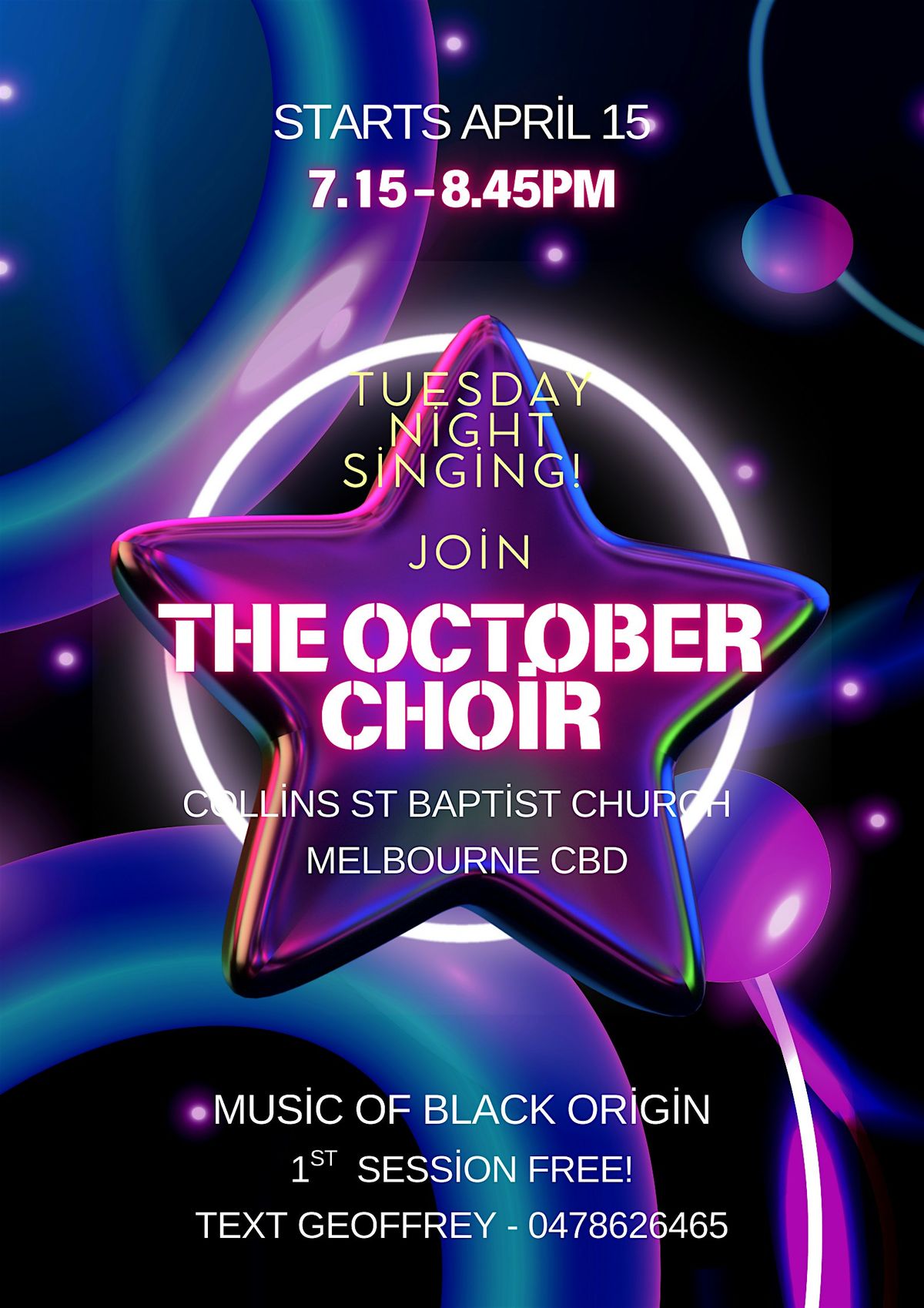 Welcome to The October Choir! Get ready for a soulful experience every Tuesday night. Our first term starts on Feb 3, 2026 at 7:15 PM (Melbourne time).