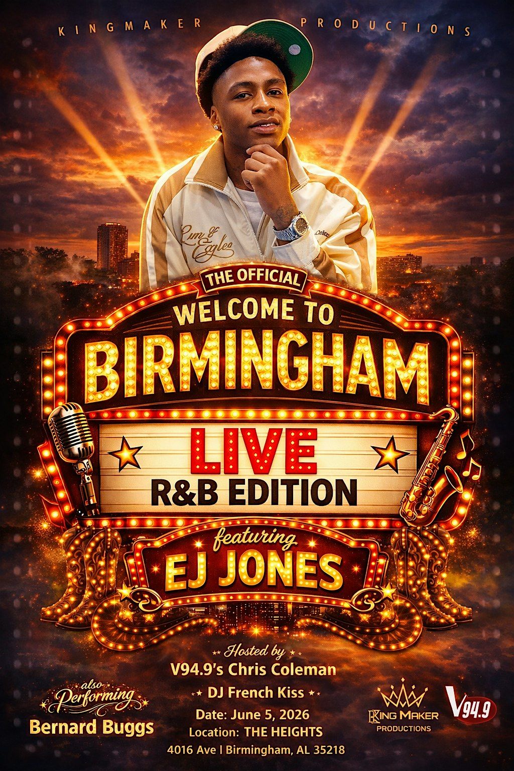 Get ready for The OFFICIAL "Welcome to Birmingham LIVE: R&B Edition featuring EJ JONES"! This in-person event is all about good vibes, smooth tunes, and amazing company. Whether you're new to Birmingham or just love R&B, come through and enjoy some live beats with EJ Jones setting the mood. Don’t miss out on an unforgettable night where the city’s rhythm comes alive!