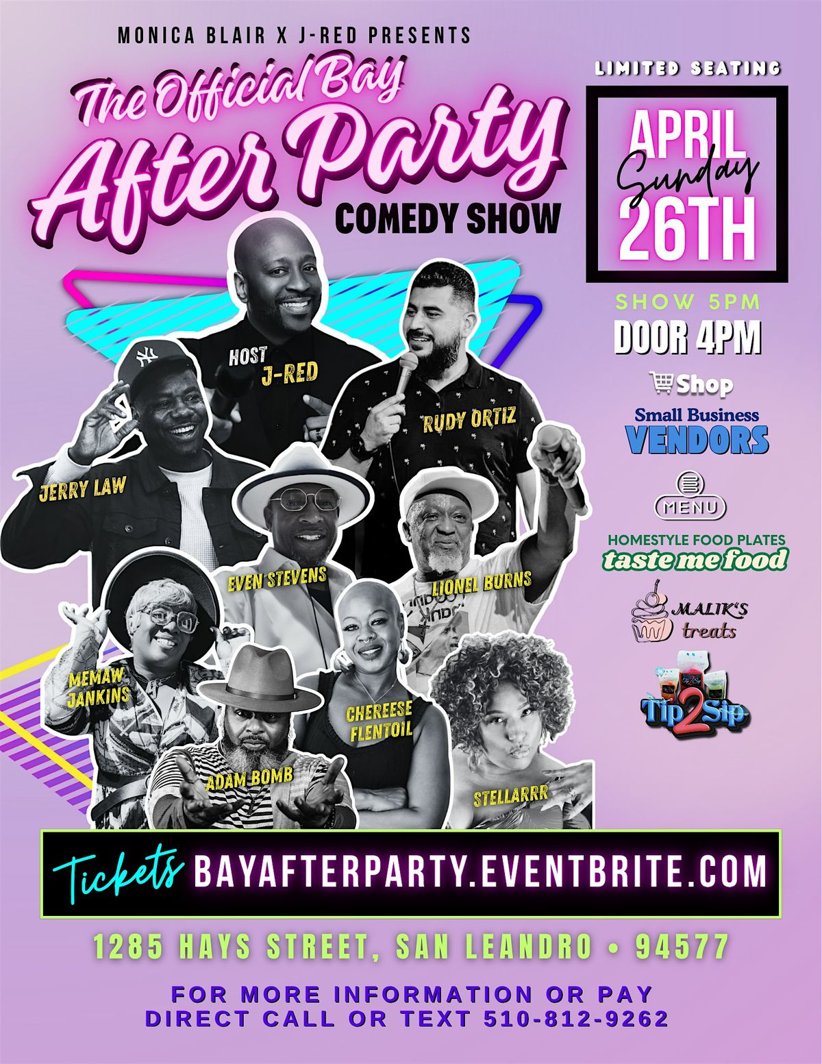 Join us for the After Party with a fire lineup!! Vendors, Menu and Tip 2 Sip — come have laughs and a good time!About this Event