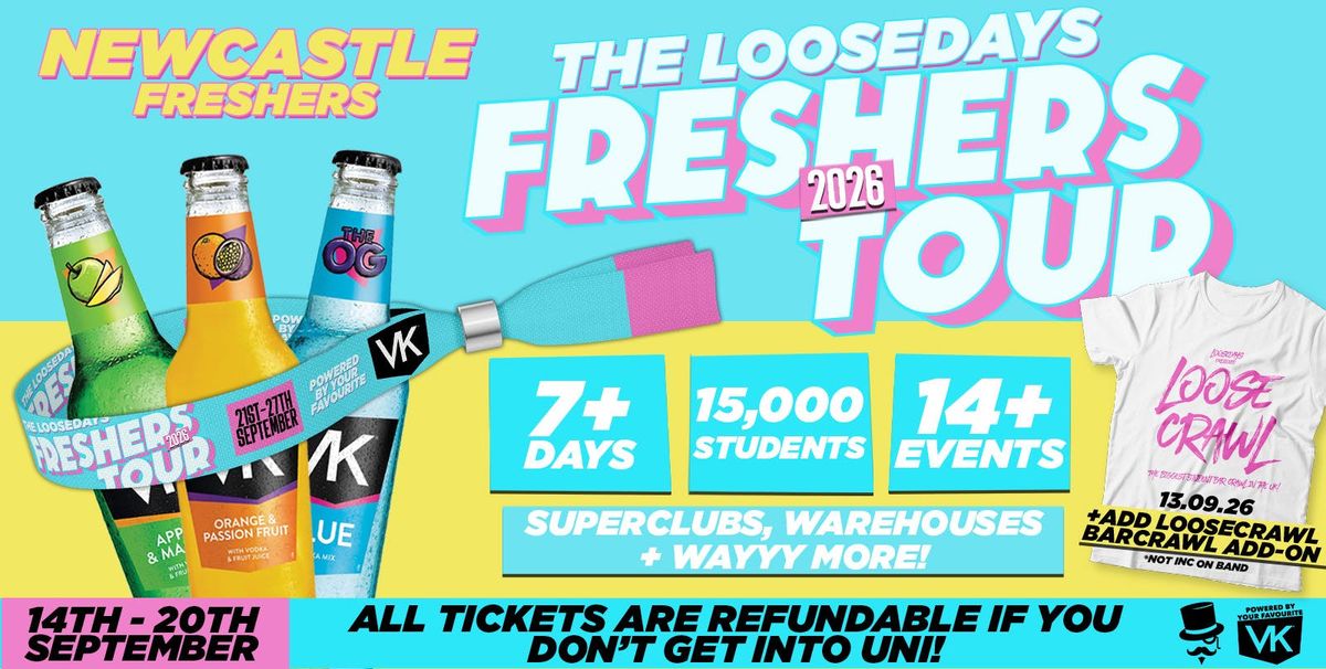 🎟 THE LOOSEDAYS NEWCASTLE FRESHERS TOUR | NEWCASTLE | 7+ DAYS... 14 EVENTS 🎟The UK's number one events company LOOSEDAYS, brings you 14+ phenomenal events across 7+ days in the best & most in-demand nightclubs throughout Newcastle! 💖🎉🤩 Powered by VK, this Freshers Week Band is your All-Access Pass with everything on that you will need for the best & most enjoyable Freshers Week experience.