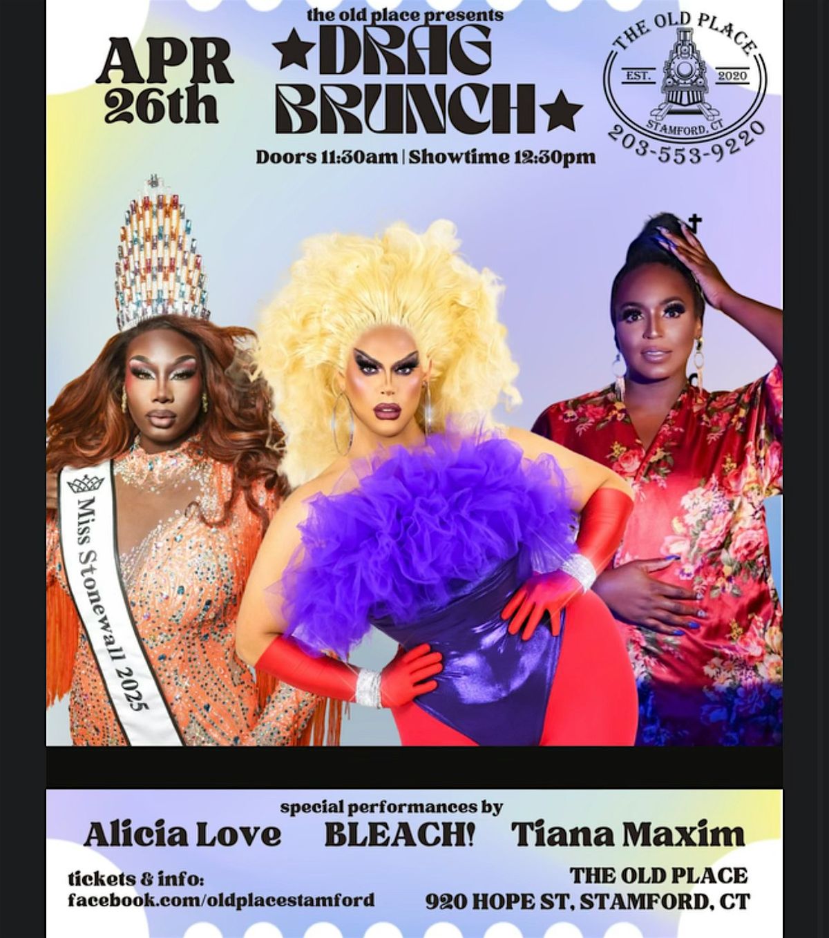 Come join us for our 3RD annual fabulous Drag Brunch at The Old Place! Indulge in delicious food and drinks while enjoying entertaining performances by talented drag queens. Purchase your ticket now to secure your spot at this unforgettable event. Get ready for a day filled with laughter, good company, and of course, plenty of mimosas! See you there!