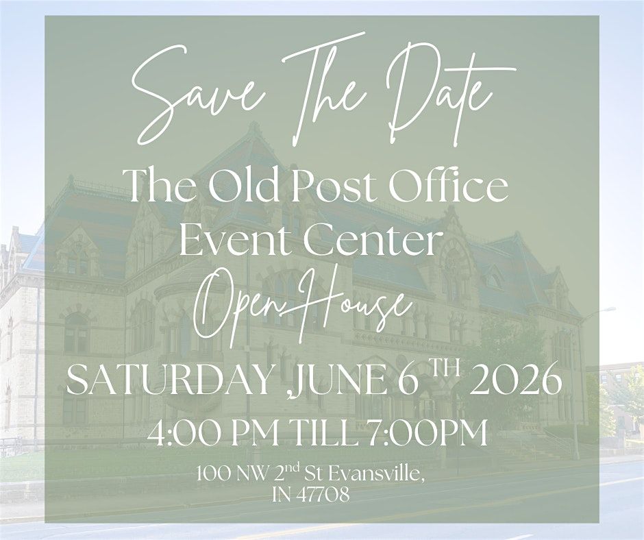 Tour the newly renovated The Old Post Office Event Center! Drinks, bites, vendors & ideas for your next event. Come-and-go 4–7 PM.
