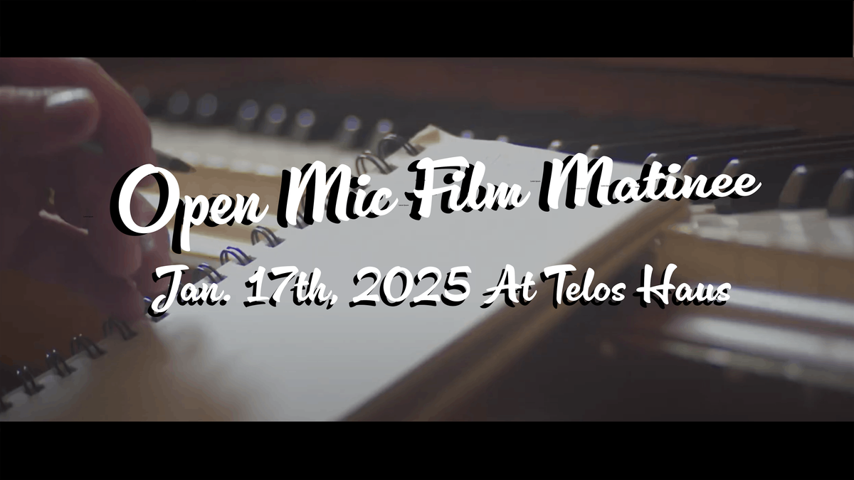 Filmmakers submit your film here by Jan. 14 to reserve your spot. You'll receive e-mail confirmation that your work will be be shown, then join us at telos.haus on January 17th! Free entry for filmmakers showing work.