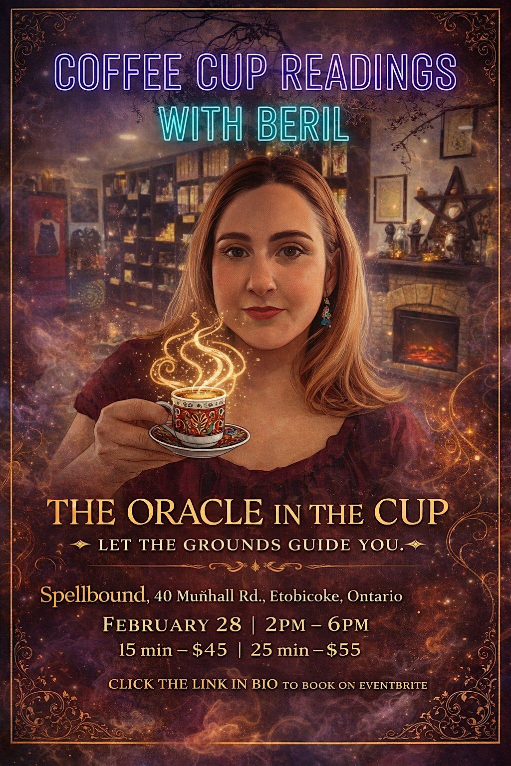 The Oracle in the Cup whispers before it speaks. In the slow swirl of Turkish coffee grounds, forgotten symbols awaken, paths reveal themselves, and intuition takes shape. This is a moment of pause β where smoke curls like a spell, warmth settles into your hands, and your cup becomes a mirror reflecting whatβs ready to be seen. Join Coffee Cup Readings with Beril for a deeply personal ritual rooted in ancient tradition, guided by intuition, artistry, and presence. No rush, no noise β just you, your cup, and the messages waiting to rise.