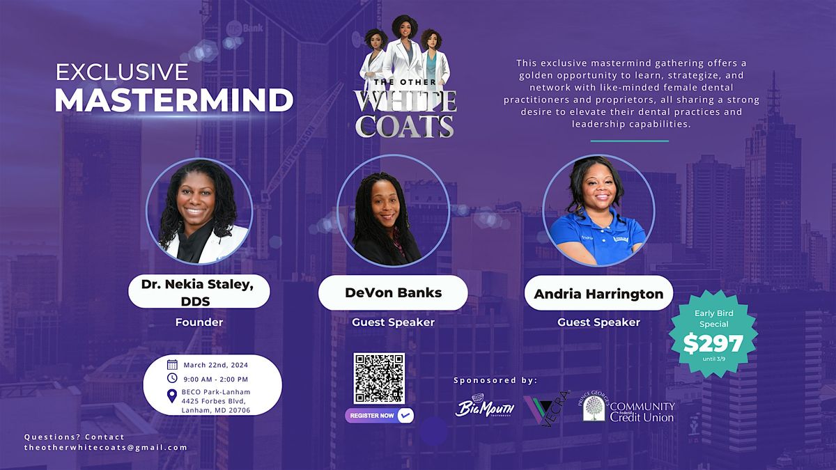 Join Dr. Nekia, a highly experienced dental professional and the proprietor of Special Care Dentistry, boasting over two decades of expertise in the dental field for an exciting in-person event. She will be joined by two dental industry experts, DeVon Banks and Andria Harrington.