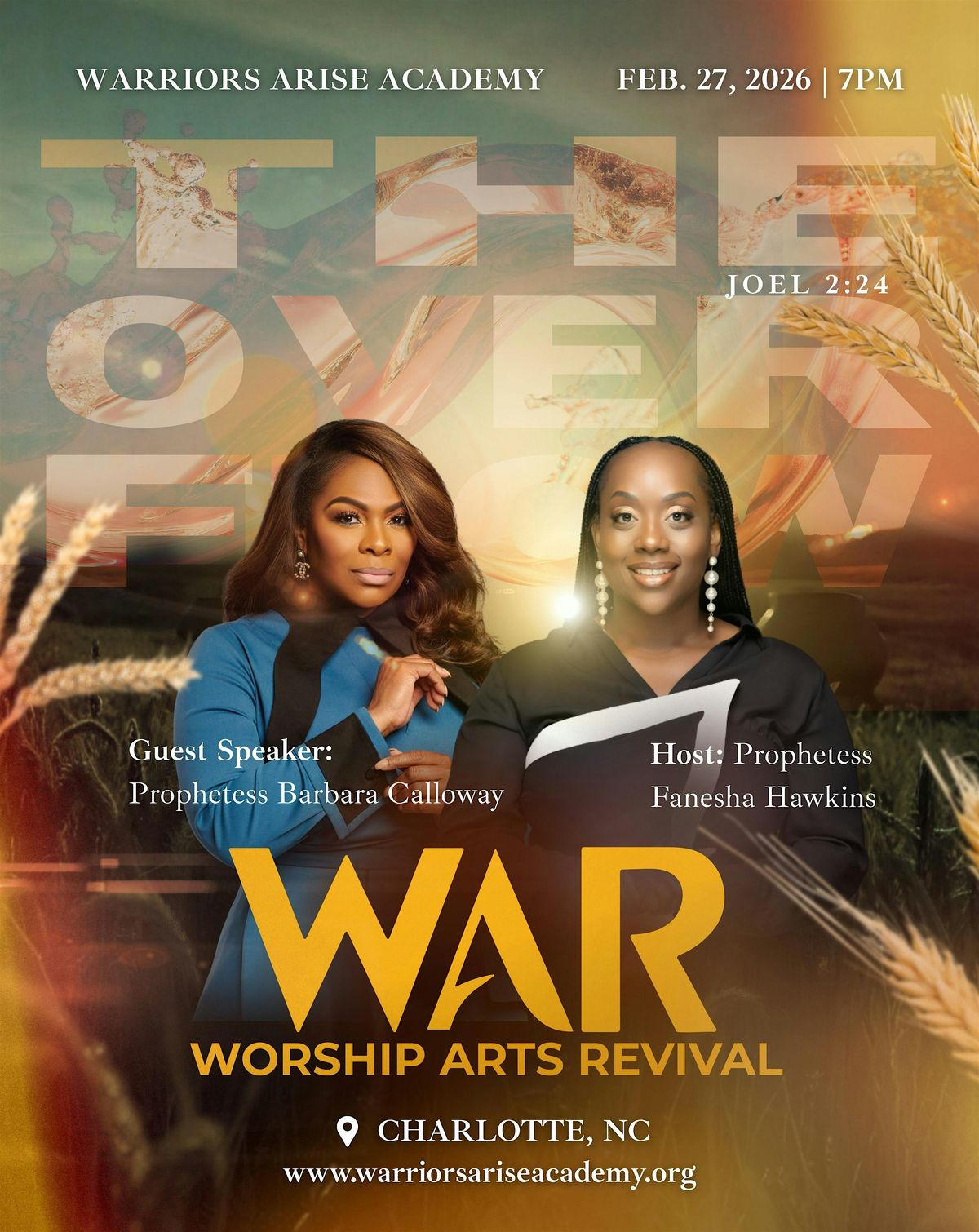 Join us for the Worship Arts Revival™️ February 27th - 28th, 2026! This year’s theme is “The Overflow.” God is pouring out abundance on His faithful remnant. Even in a chaotic world, He is calling His people back to Him, and a fresh revival is being birthed in the earth for all. The Worship Arts Revival™️ is designed for families to grow in Christ together spiritually, emotionally, and holistically.