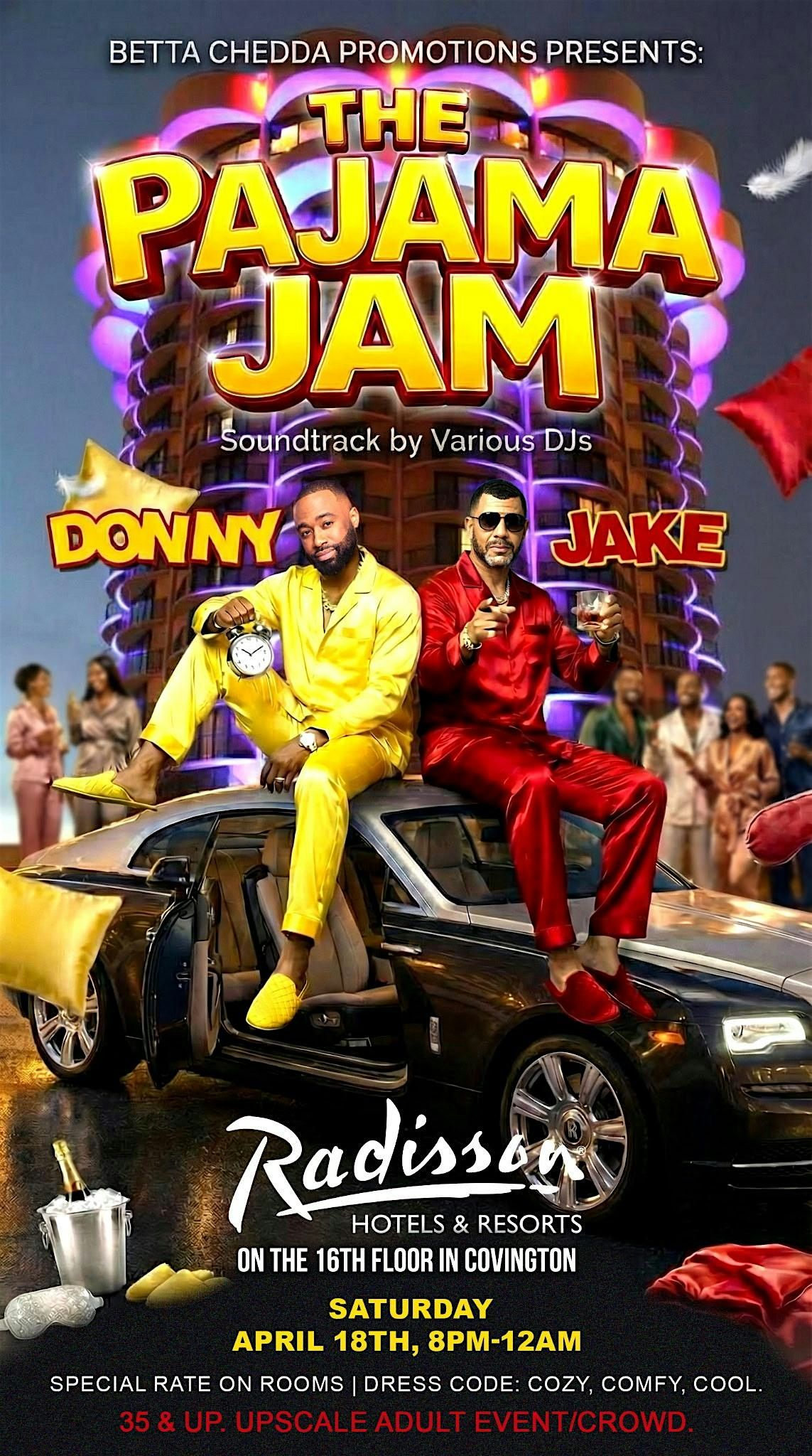 Betta Chedda Promotions presents THE PAJAMA JAM! We're excited to announce that it will take place at the beautiful 16th Floor of the Radisson, offering an amazing panoramic view of the Cincinnati skyline. Get ready for an unforgettable night of music, energy, and elevated vibes ina stunning new setting! This upgraded location brings a more intimate and scenic experience, perfect for a night out with friends! We're bringing multiple DJs ( DJ Guy West, DJ Arie, & DJ Chris Paul) setting the vibe, grown & sexy atmosphere, and yes...we're giving out Betta Chedda money you can use toward drinks at the bar! Now let's be clear about the DRESS CODE: COMFY. COZY. COOL and for the 35 and up upscale crowd. This is your time to step out in your flyest pajamas - silk sets, matching sets, robes, onesies... and yes, house shoes are absolutely welcome. Make it a whole experience and book a room! There's FREE parking and a special discounted room rate available, so secure your stay and turn the night into a staycation. No rushing home - just vibes.