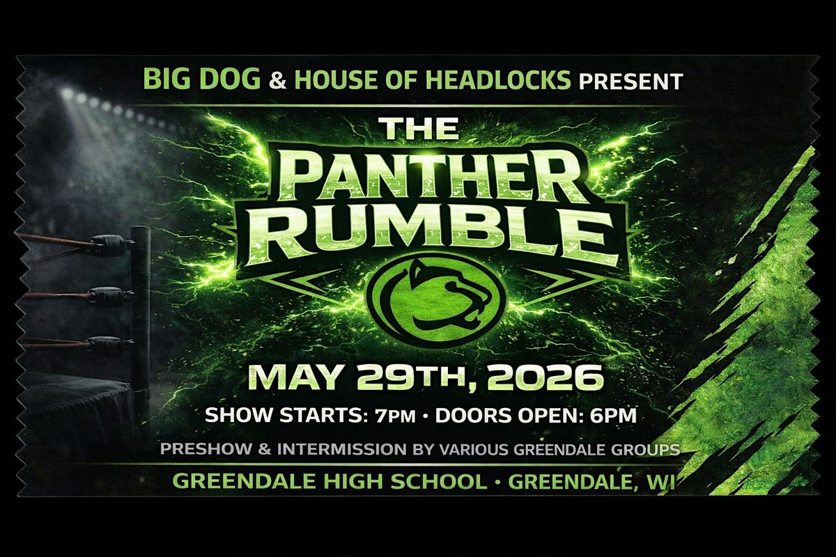 Get ready for an epic night at Greendale High School Gym! Join us on May 29, 2026 at 7:00 PM (CT) for some intense pro wrestling action. It’s gonna be a wild, fun-filled evening with plenty of surprises and jaw-dropping moves. Don’t miss out on the Panther Rumble—where the excitement never quits! Featuring some of the various clubs and students of Greendale High School and the Stars of House Of Headlocks wrestling!